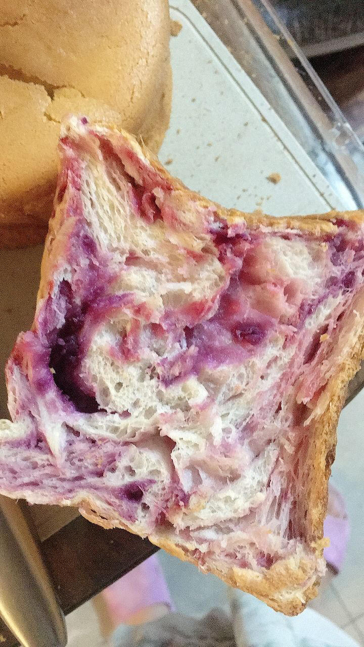 本想做豆沙的,豆沙没来得及做,做了紫薯的吐司