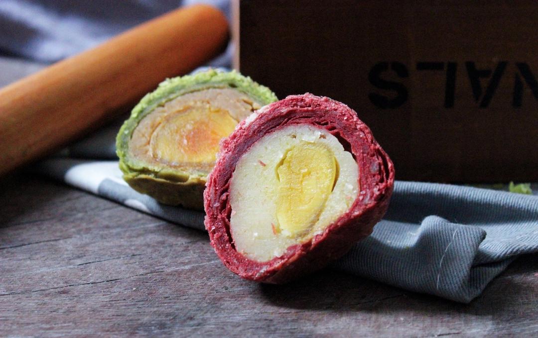 月饼节提前练手,月饼回油中,看看酥好了,红色的是椰蓉的,第一次尝试这口味,这信号灯的色也是够雷 #晚餐•2017年8月6...