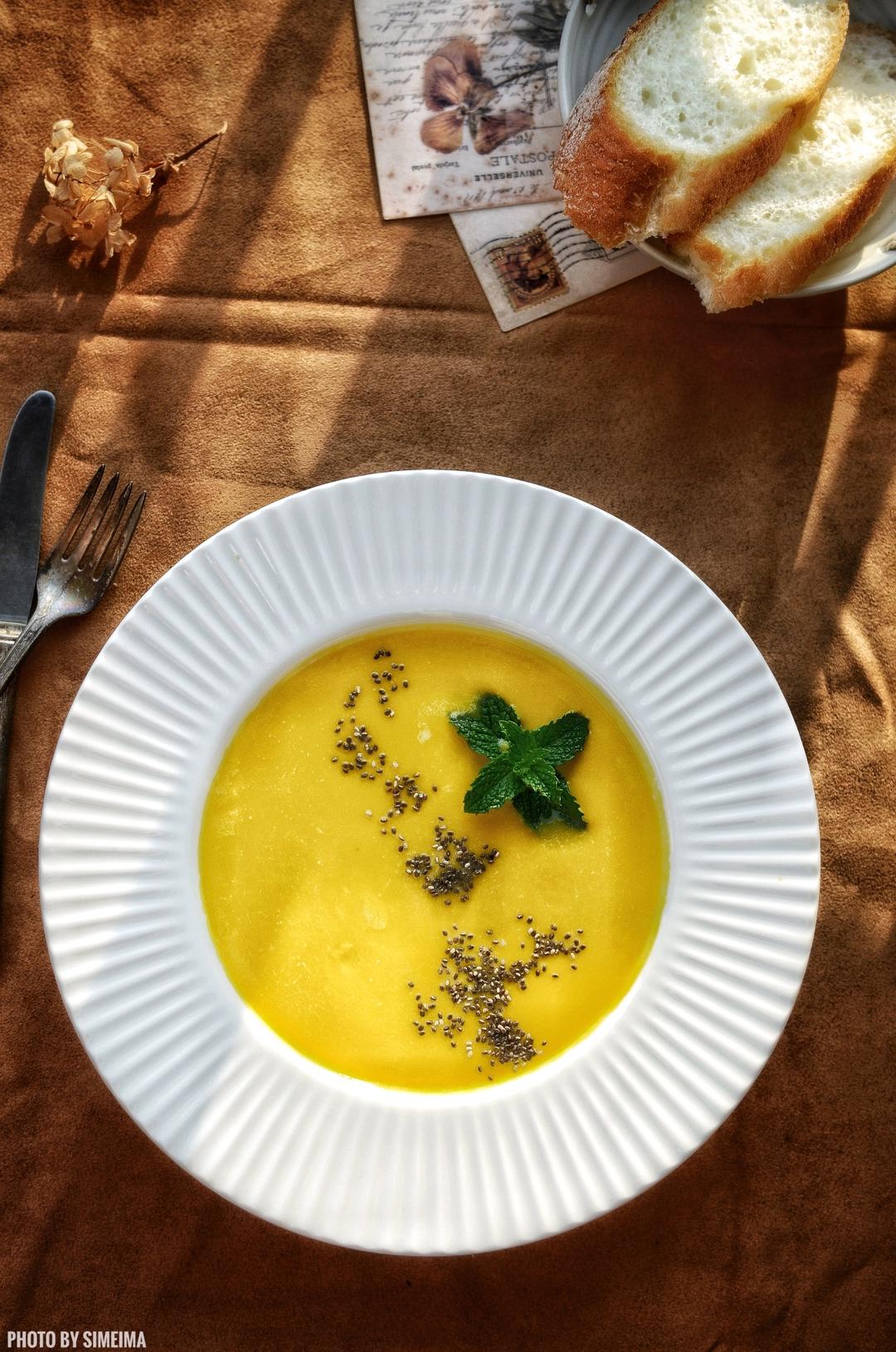 椰香南瓜浓汤配法棍,经典好吃,美味减脂!