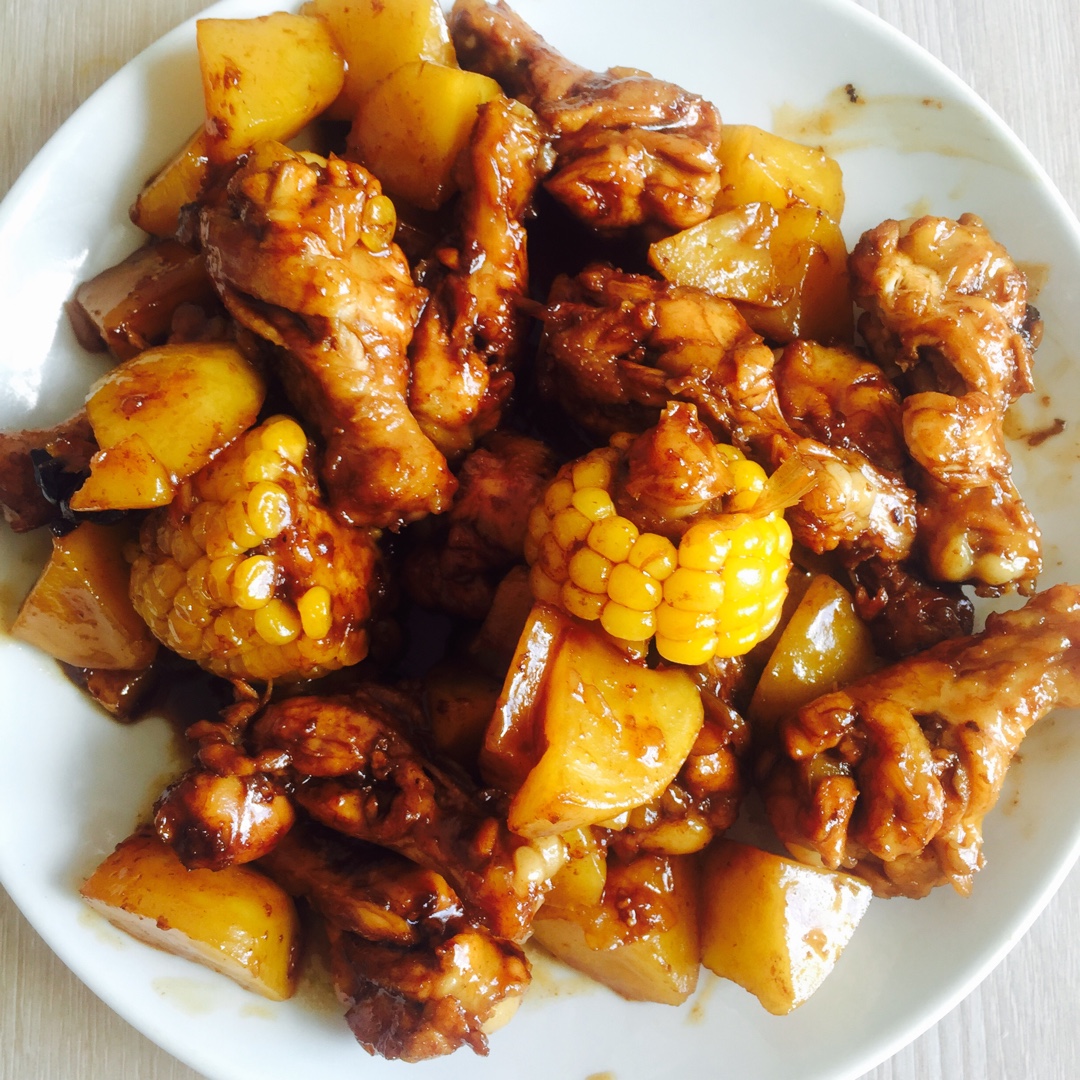 可乐鸡腿🍗放了点土豆和玉米!还不错~