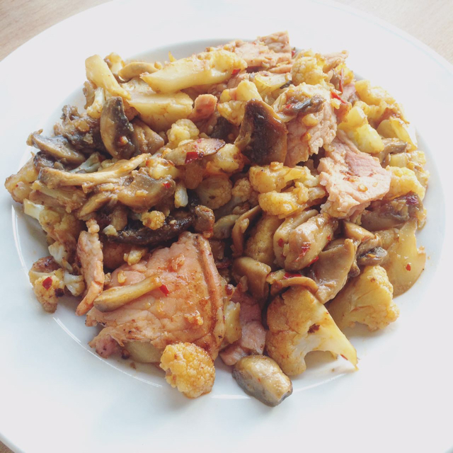 花菜蘑菇炒培根