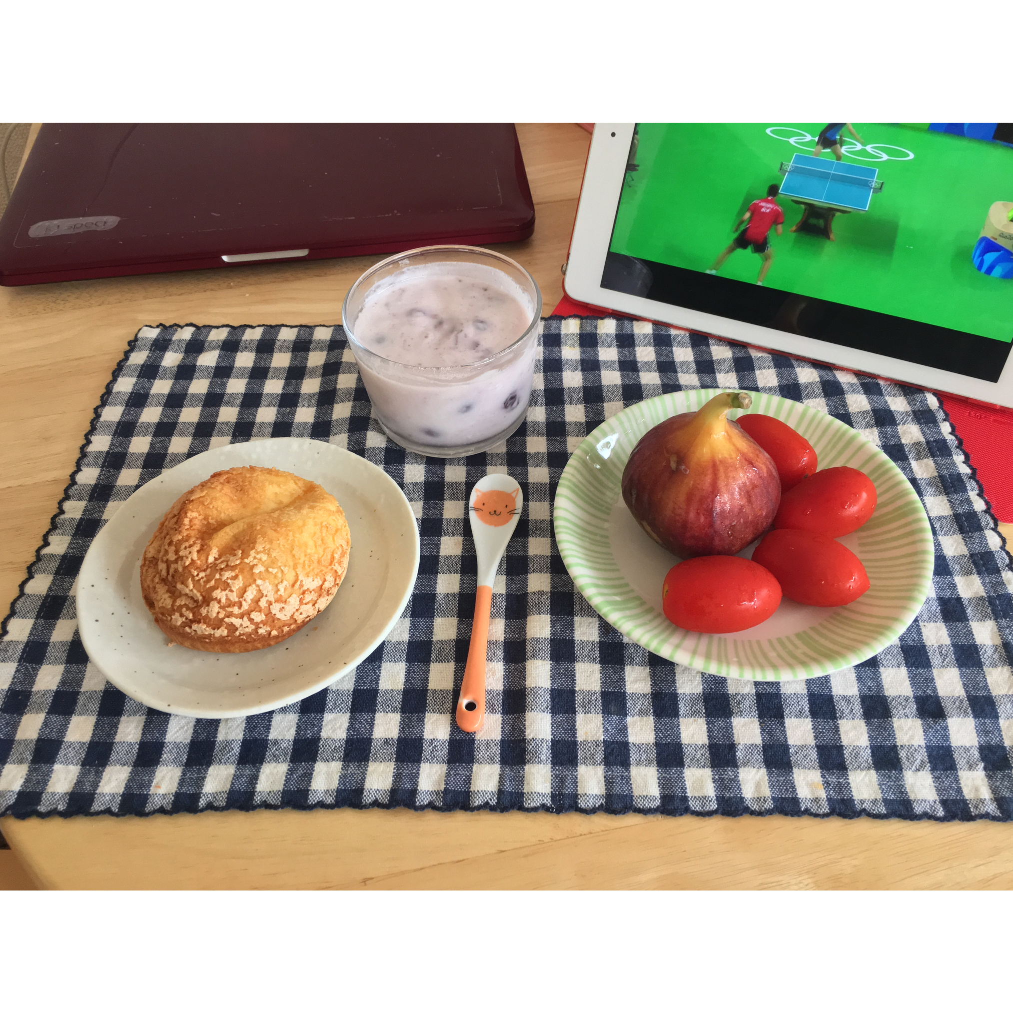 边看乒乓球比赛边吃早餐、