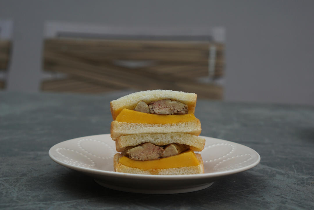 芒果鹅肝三明治+水。