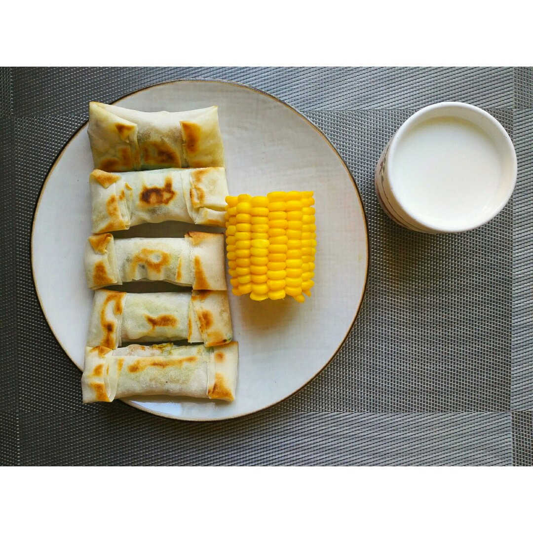 春卷&玉米&牛奶🐮所谓的春卷,就是卷黄瓜,鸡胸肉和小包菜...