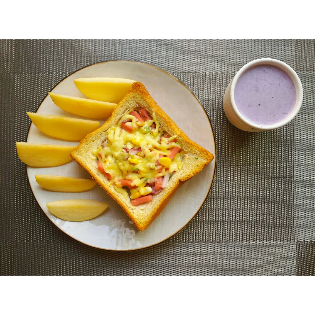 鸡蛋焗土司&苹果&紫薯牛奶🐮土司扣一块,下面放一块,然后...