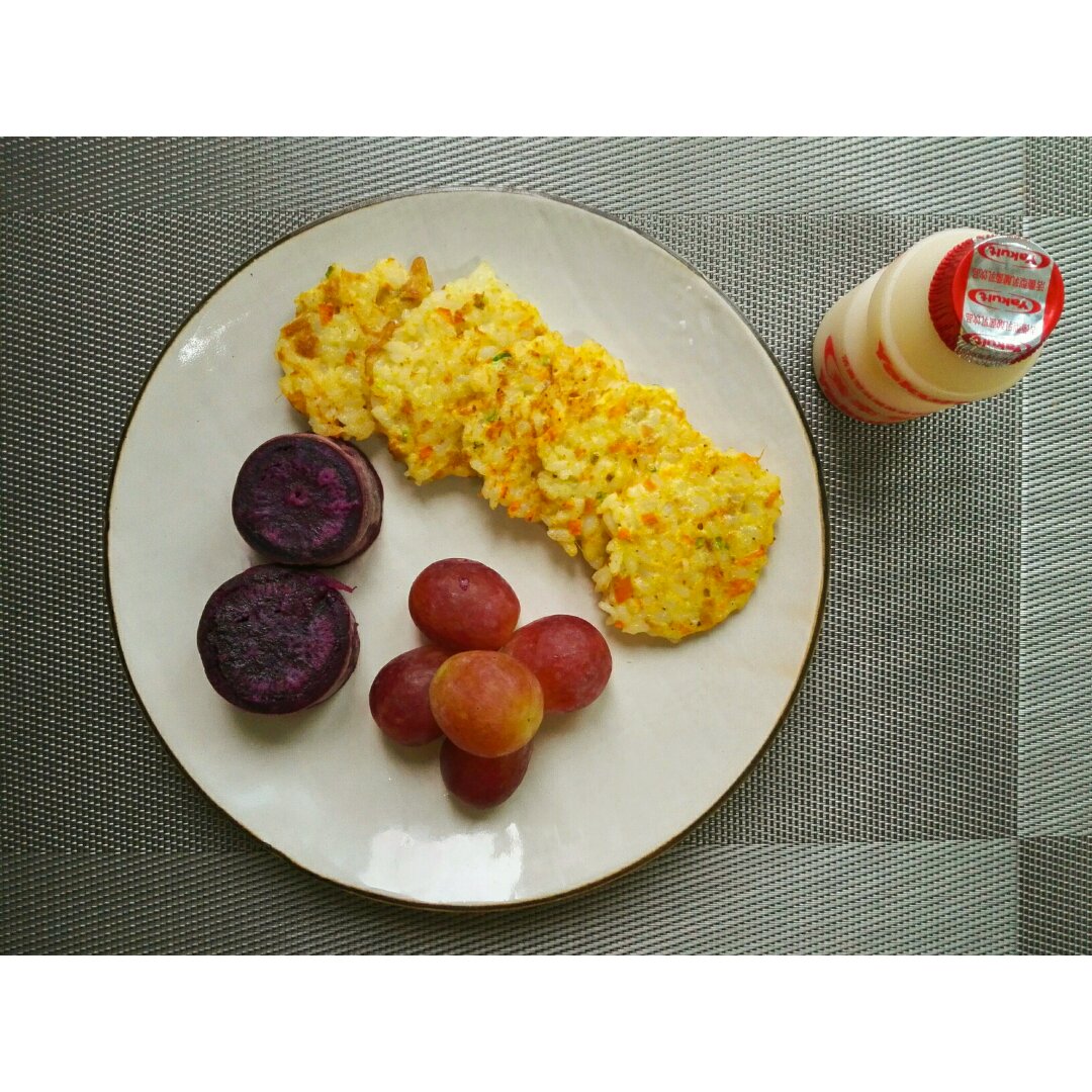 香煎米饼&紫薯&提子&养乐多。米饼第二次做了,依...