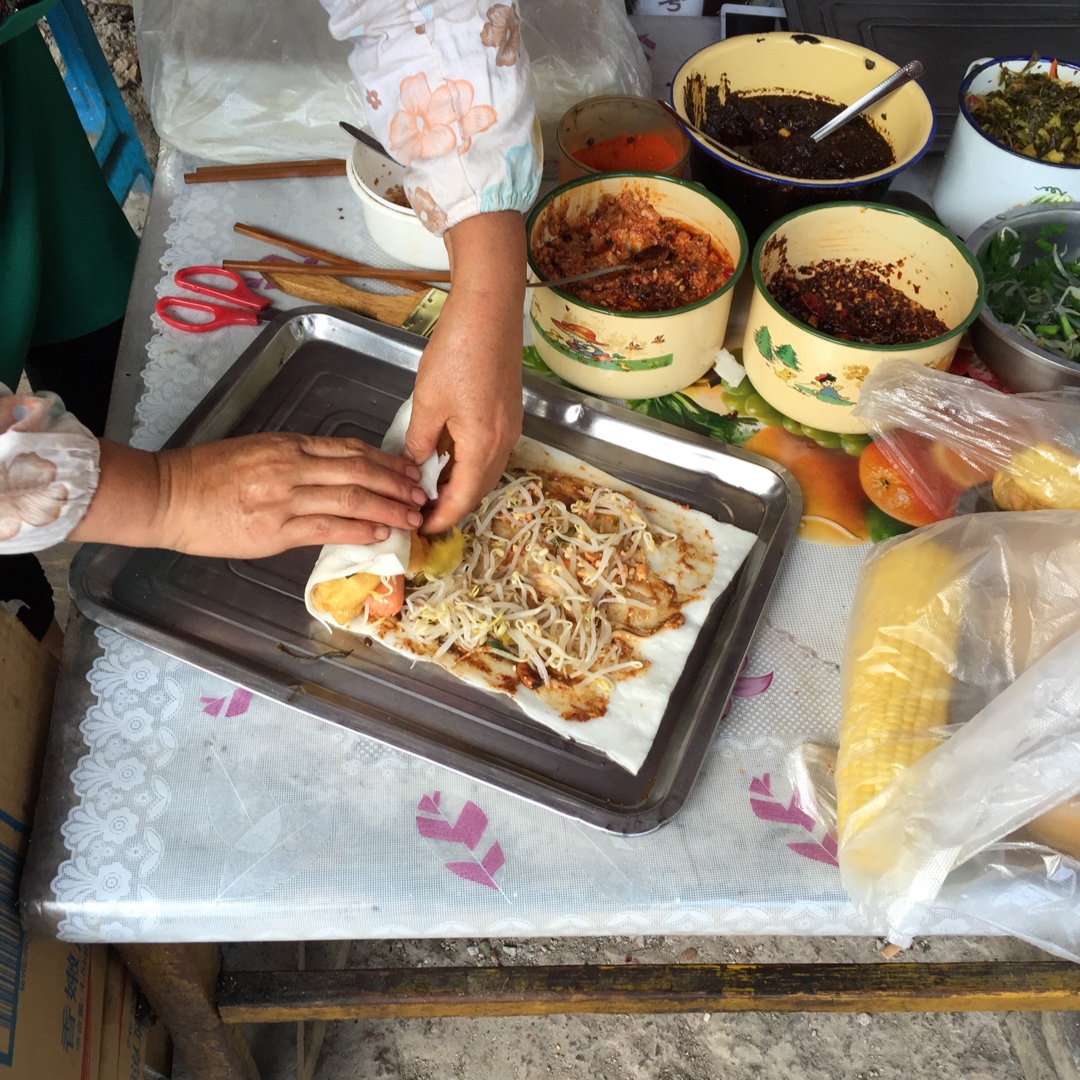 之前在丽江吃的早餐, 烤饵块 因为起的晚, 好多早餐摊都收了. 这家我买完之后也准备收摊了. 加了油条和香肠, 本来想...