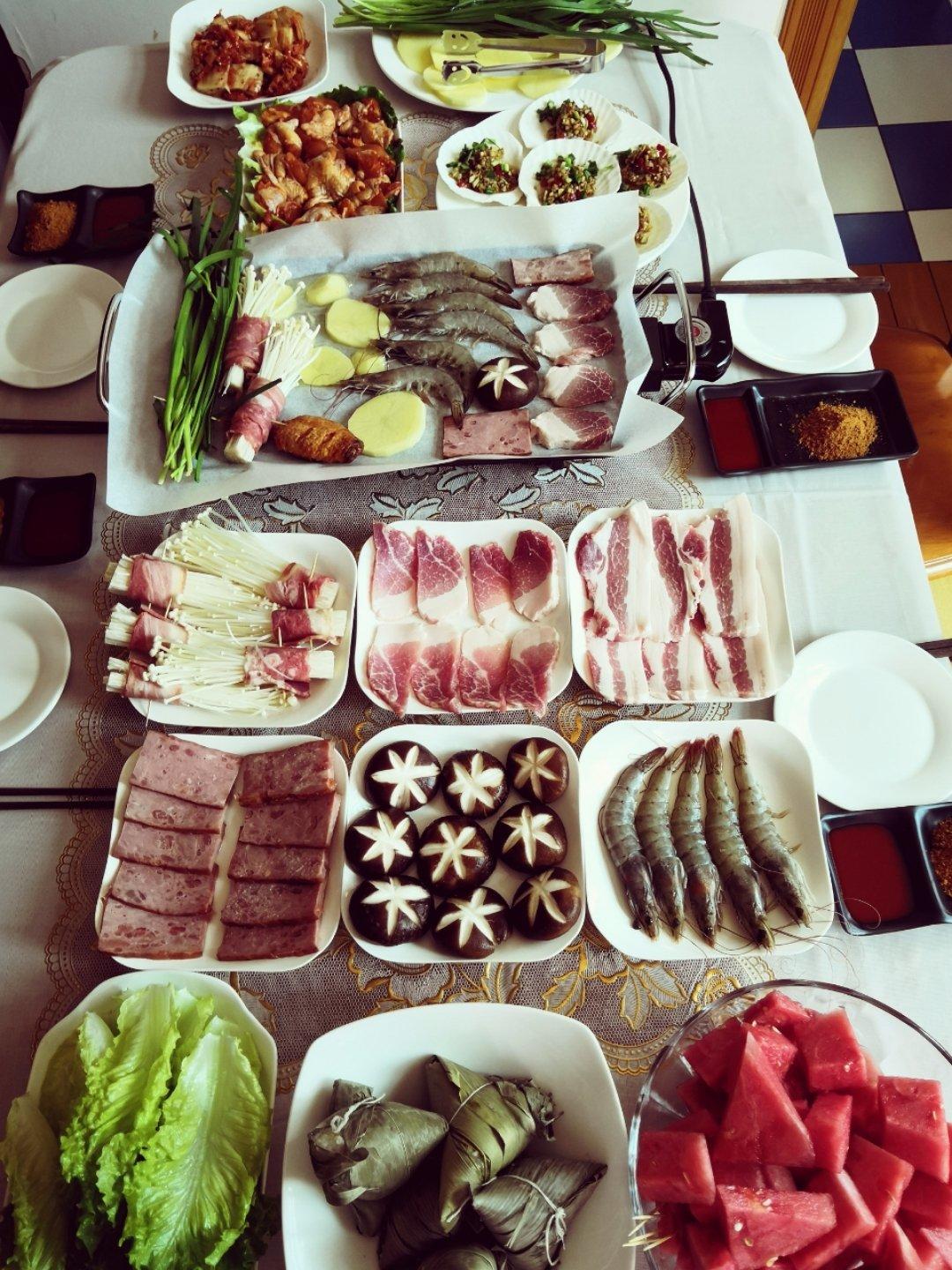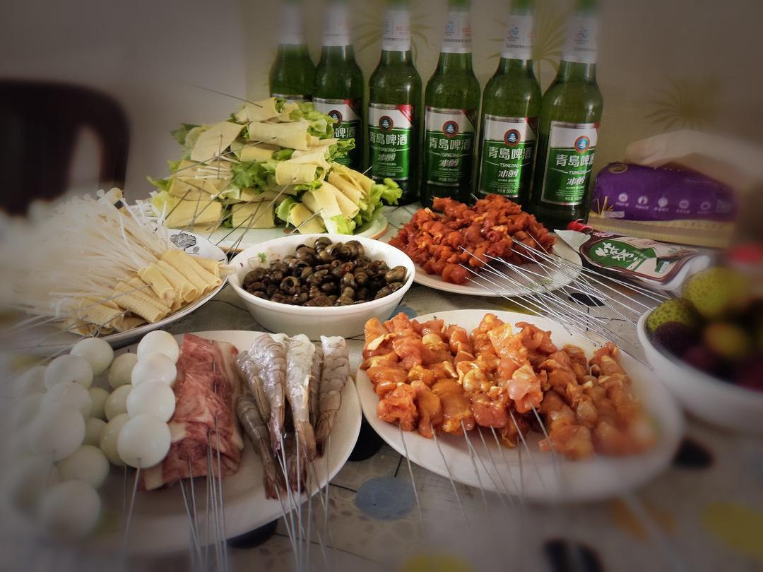 都是自己当天现腌现切现串的(除了热狗,下次也自己做)这样BBQ,可以多来几次