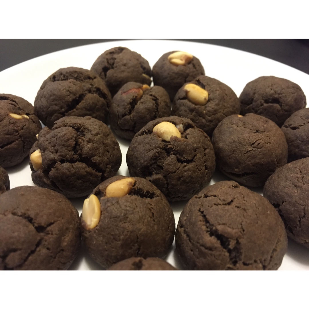 为啥我的没有自己变扁🙄,变巧克力球了……没巧克力豆加了花生~