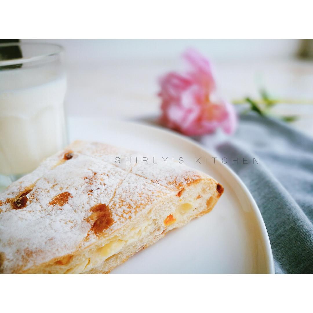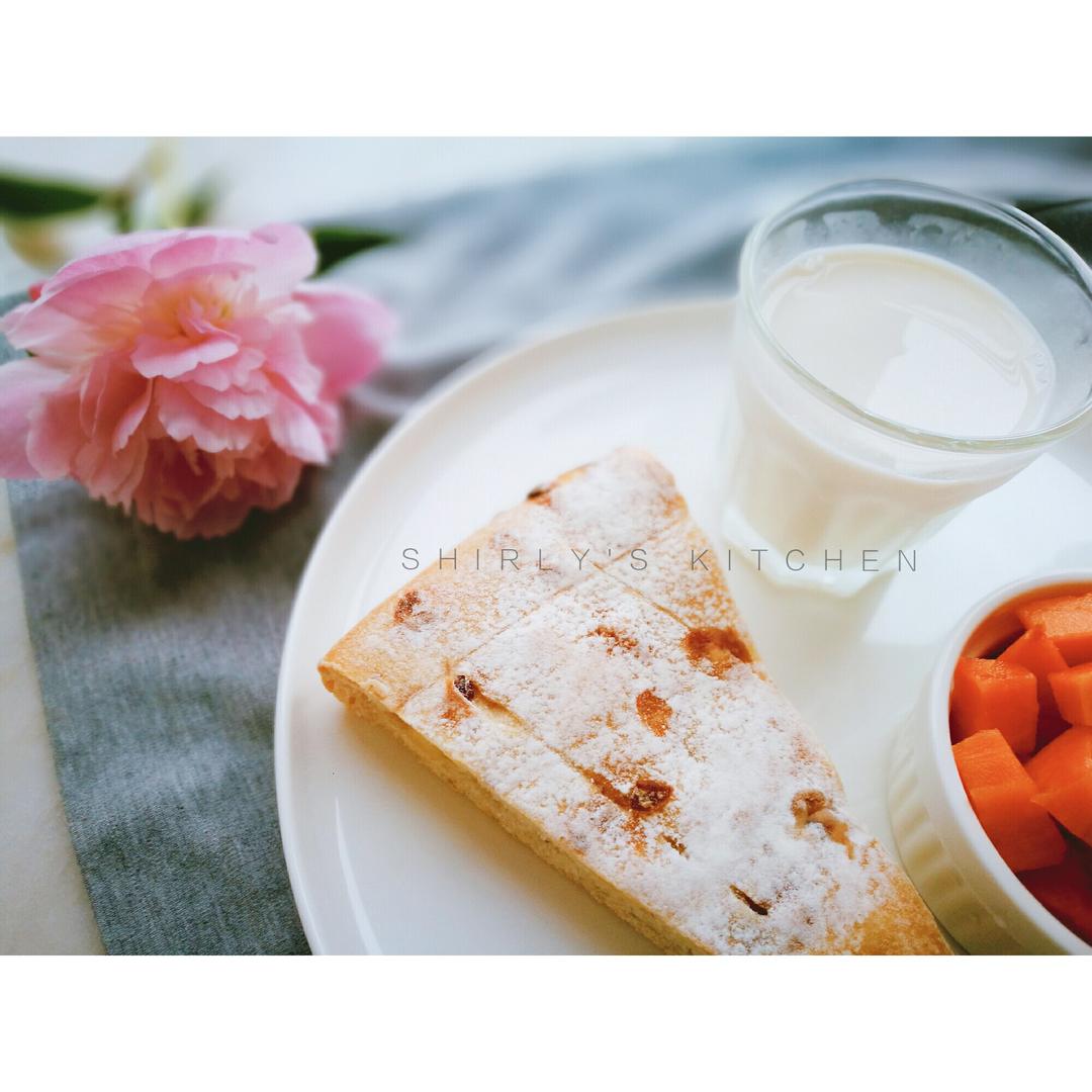 蔓越莓奶酪面包、脱脂牛奶、木瓜