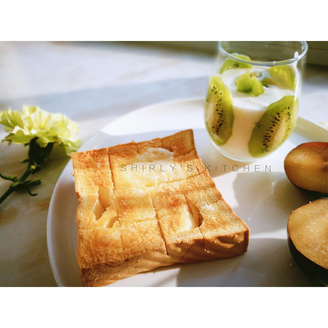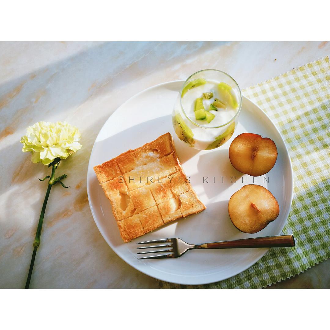 砂糖黄油厚烤土司+奇异果酸奶杯+布林