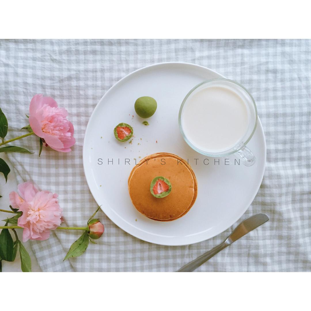 pancake、牛奶、抹茶草莓巧克力