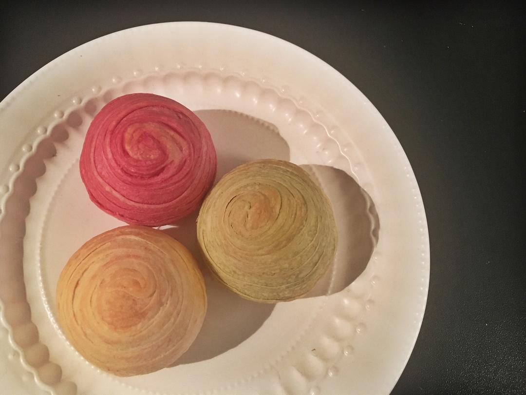 往里面包了芋泥肉松和蛋黄。好吃极啦。可惜在国外猪油是奢侈品,于是就用了黄油代替啦!也可以起酥。 #晚餐•2017年12月...