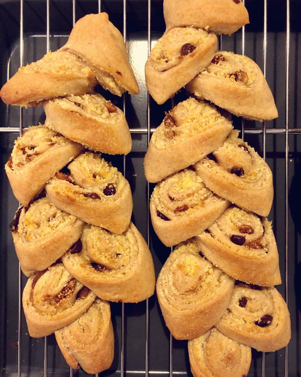 不刷蛋液加入全麦款😄 顺便把冰箱里剩下的酒渍果干用了😄