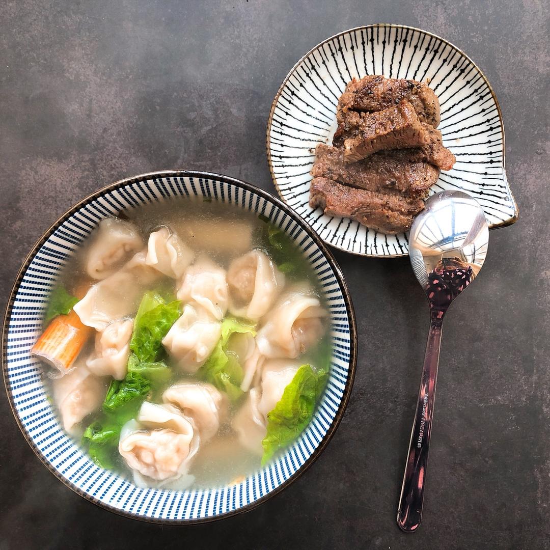 馄饨配牛排,虽然奇怪但是喜欢呀~不用加班的周末,心情总是愉悦。