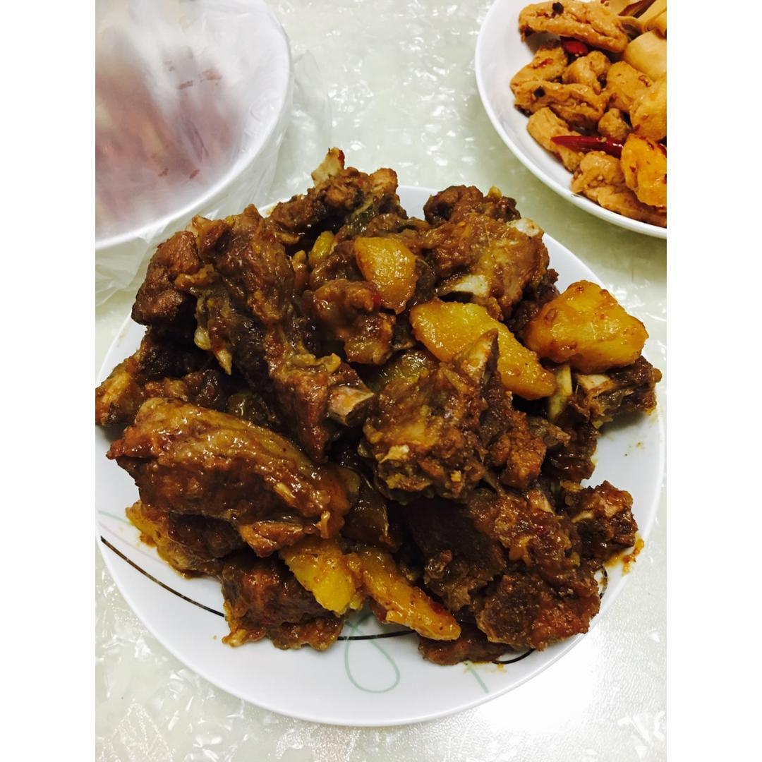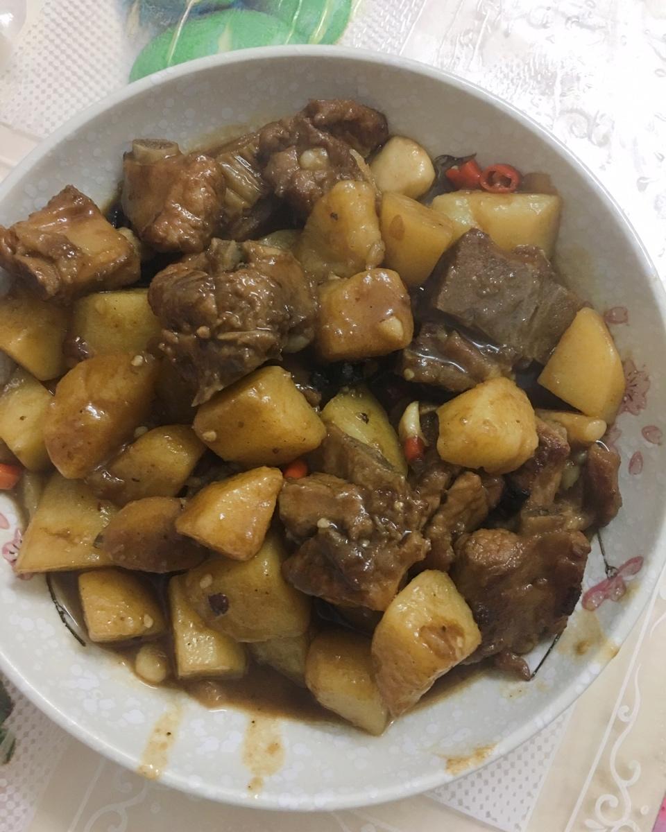 红烧排骨土豆,终于上色了,肉炖得软软的,好好吃