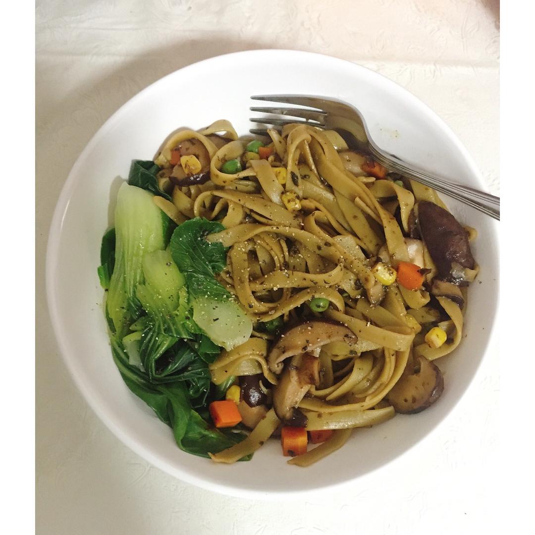冰箱沒菜了,搜刮搜刮煮了盤素意麵🍝