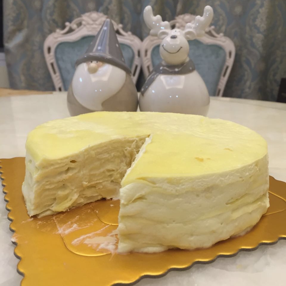 图一:今天的八寸榴莲千层,几乎用掉我一整个榴莲~