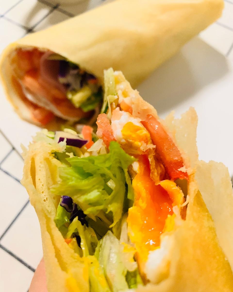 自己做的全麦饼,卷起一切美味~