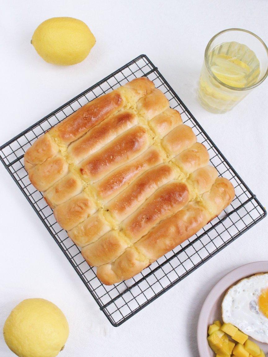 试着用柠檬酱做了排包,柠檬皮屑揉进面团,柠檬酱做馅儿...