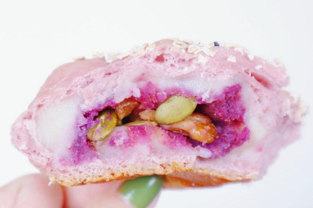 紫薯面团+紫薯 麻薯 葡萄干 核桃 南瓜子的馅儿,我暴风哭泣的好吃T﹏T