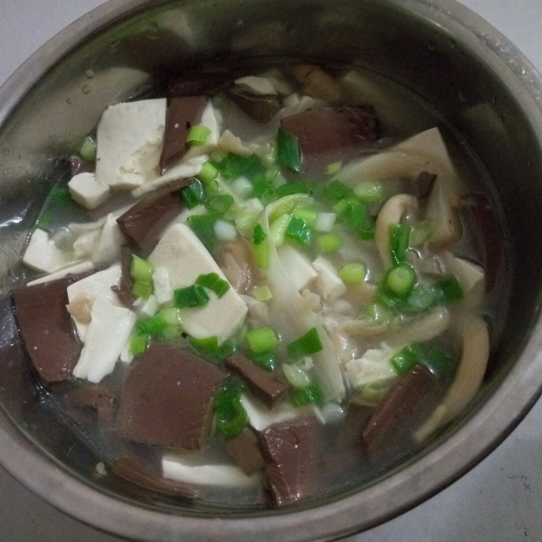 今天刚献完血,晚饭就吃鸭血豆腐汤咯,补补血。看到家里剩着的蘑菇和娃娃菜也给顺手...