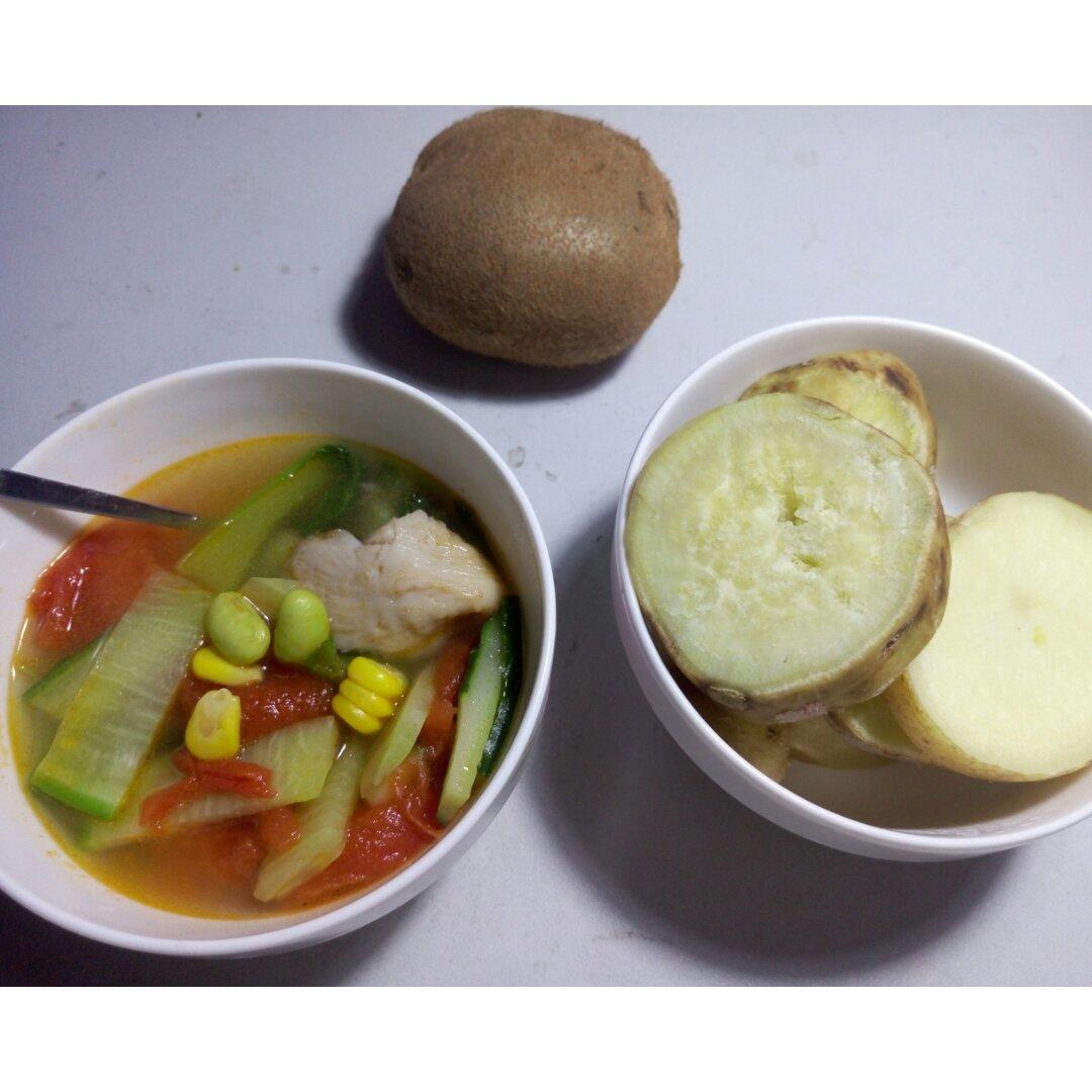 搜刮冰箱剩菜,煮了红薯和小半盆蔬菜,吃完就等凌晨回家的火车咯。上班两个多月来第...