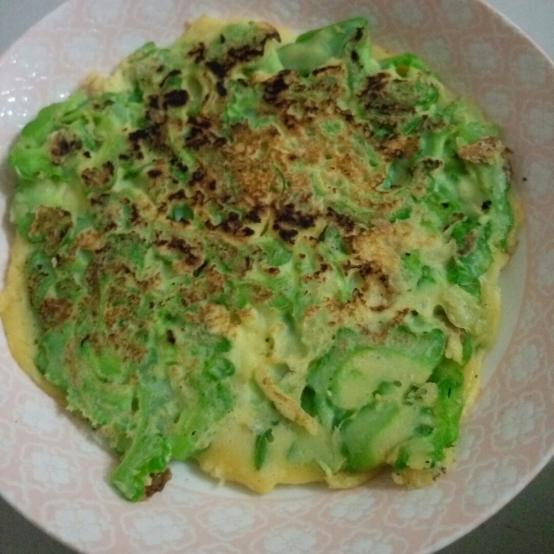 早餐鸡蛋苦瓜饼,脆脆的,一点都尝不到苦味,苦瓜新吃法。😍