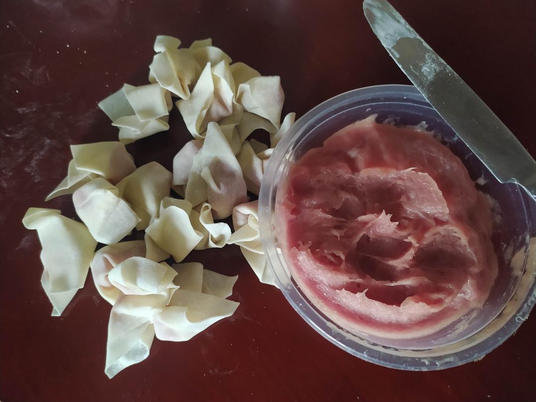 一斤多的腿肉,在菜市场里请人加工,打了三碗扁肉馅,煮两碗扁肉只用了半碗扁肉...
