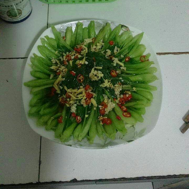白灼上海青,撒上蒜末,淋上热油、生抽,简单易做,味道很棒~
