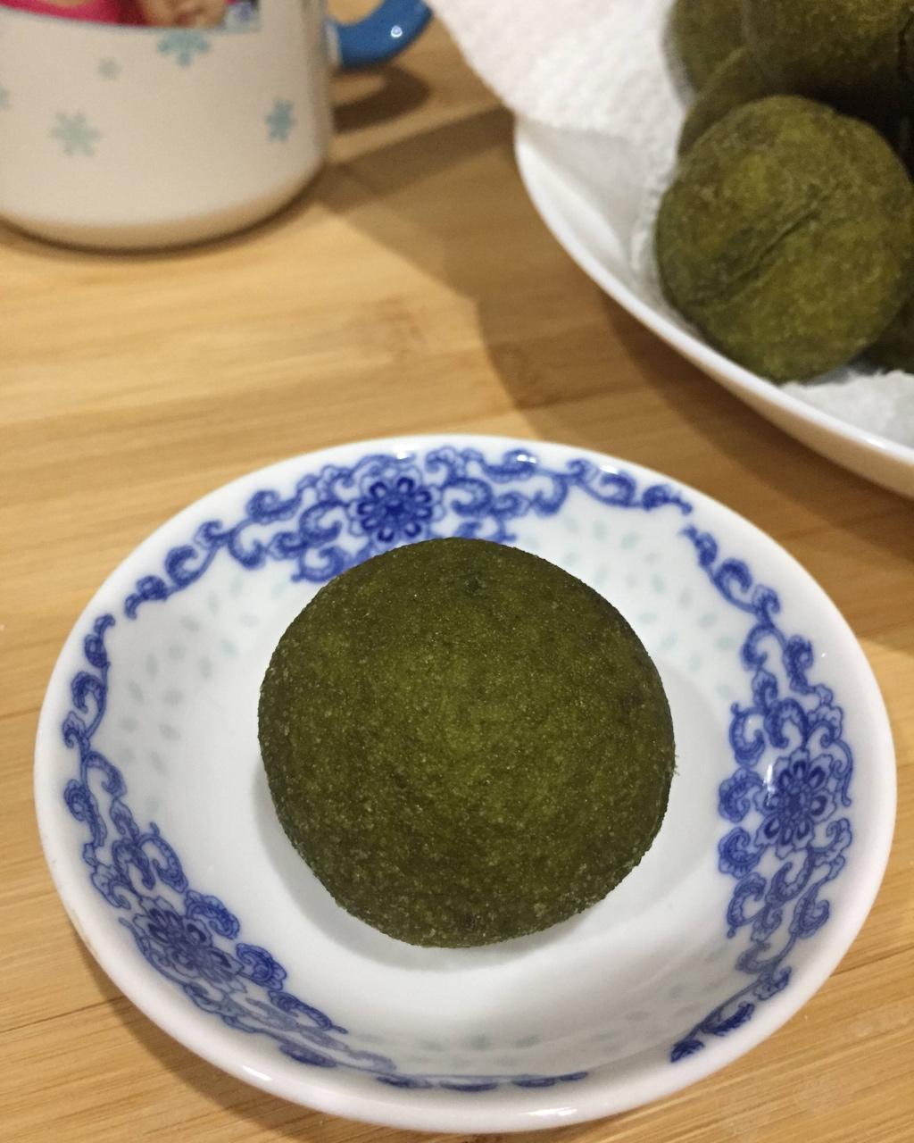 三棵艾草长的很开心 有点太大棵了 怕要老了 咔嚓一剪子下去 摘下嫩叶洗干净 焯过水 小V打几下 加点糯米粉 加丁点粘米粉...