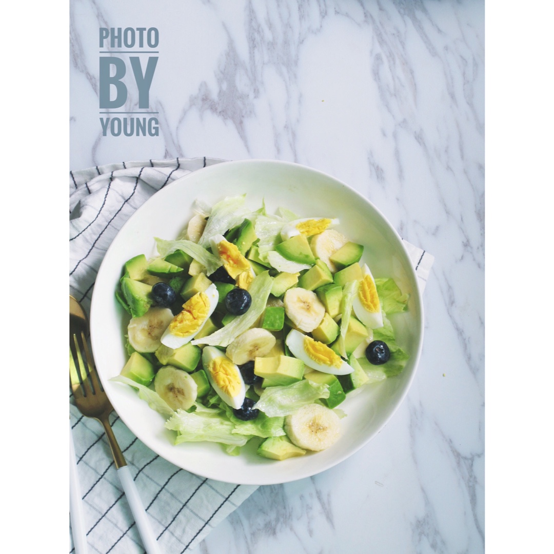 香蕉,牛油果,鸡蛋,生菜,加芝麻沙拉酱,他居然说不腻😂