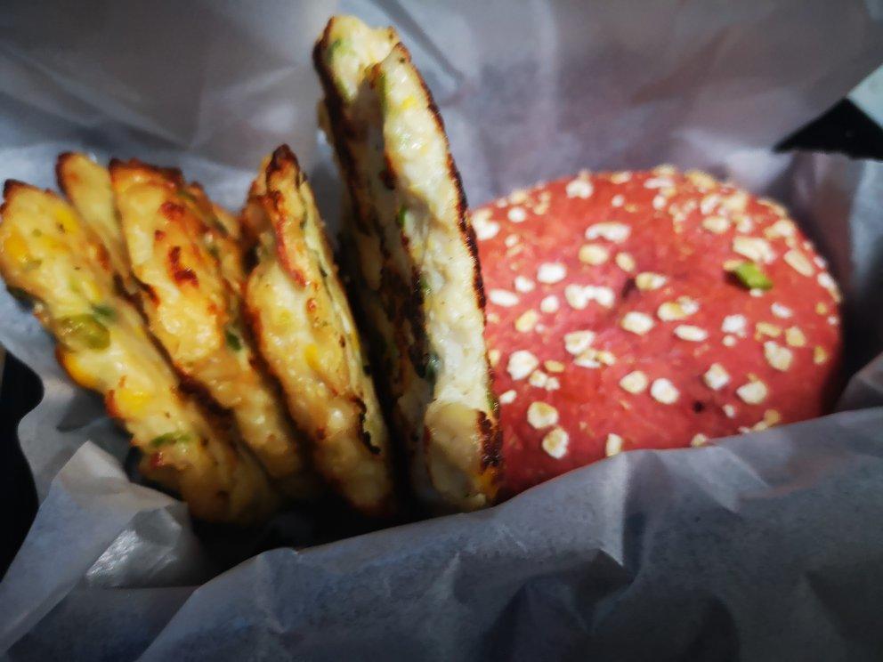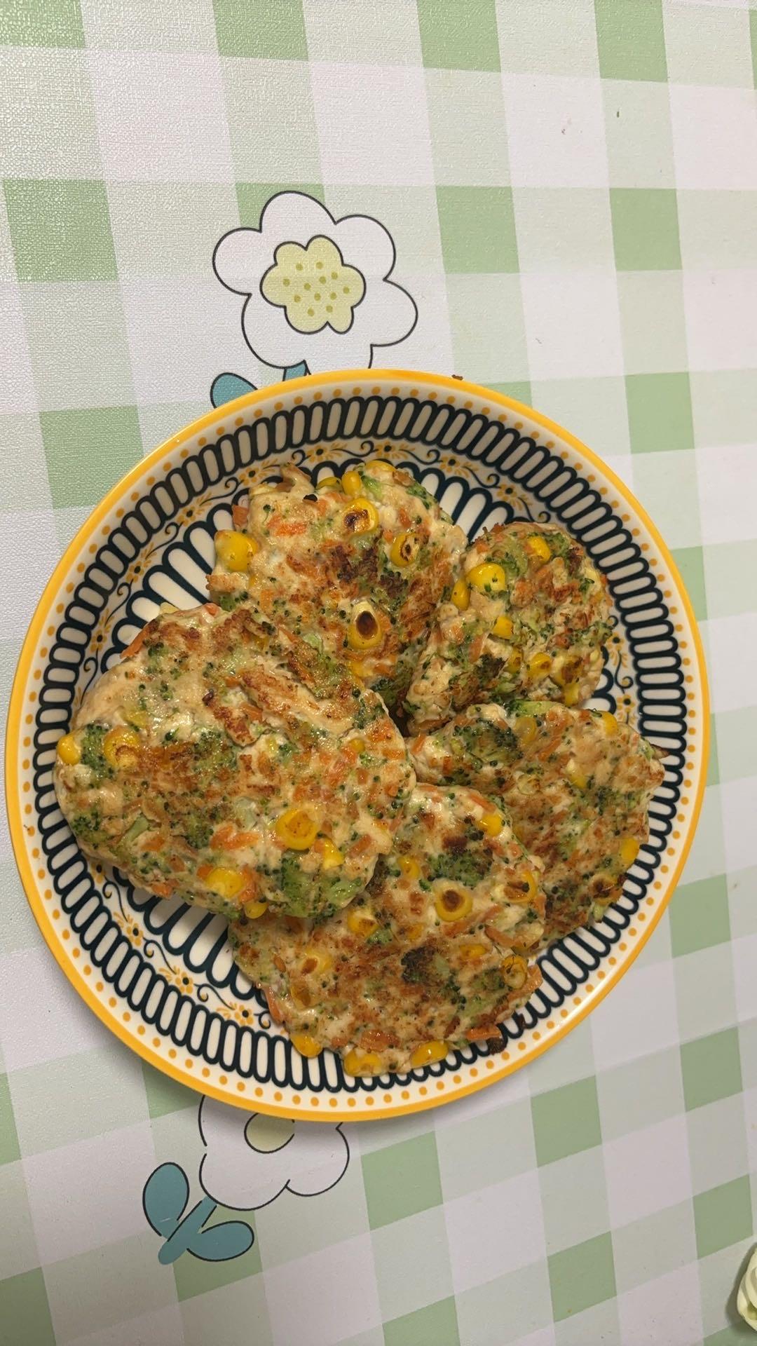 自制马蹄青豆玉米虾仁鸡肉饼