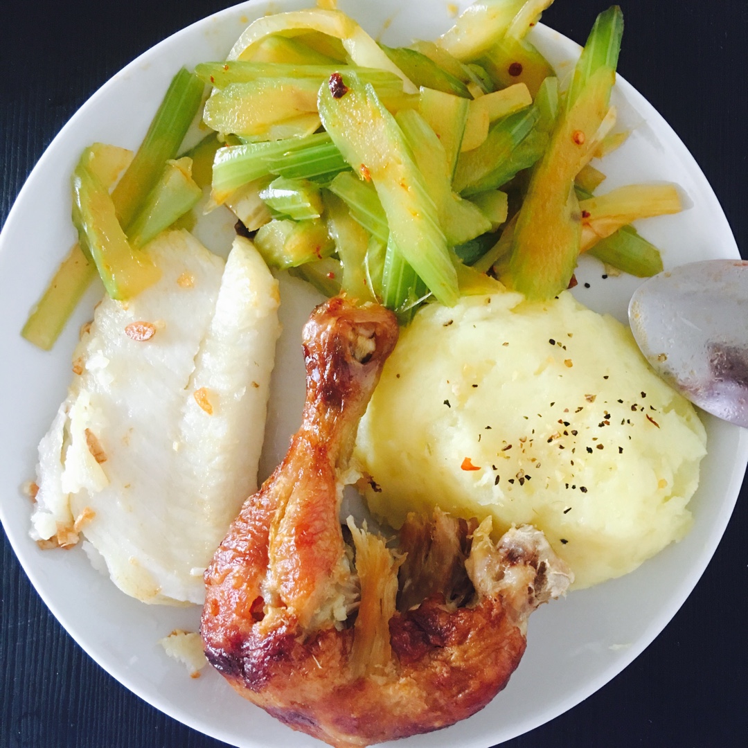 鱼扒鸡腿土豆泥,国民女神老干妈😂