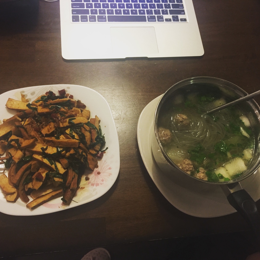 韭菜香干 冬瓜丸子汤 自己做的肉丸噢
