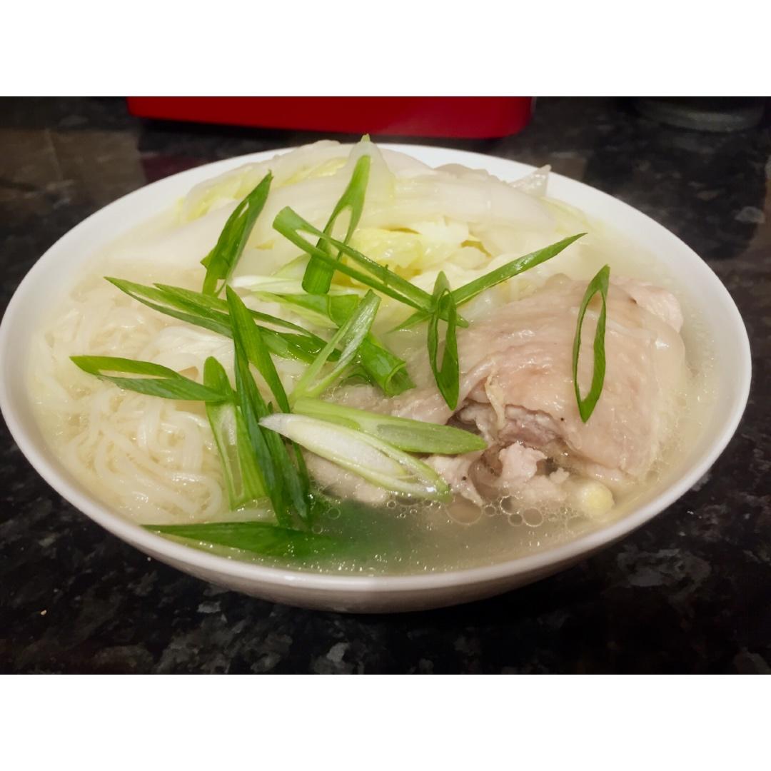 没喝完的鸡汤,早上拿来做炖鸡面,还是不错哟。