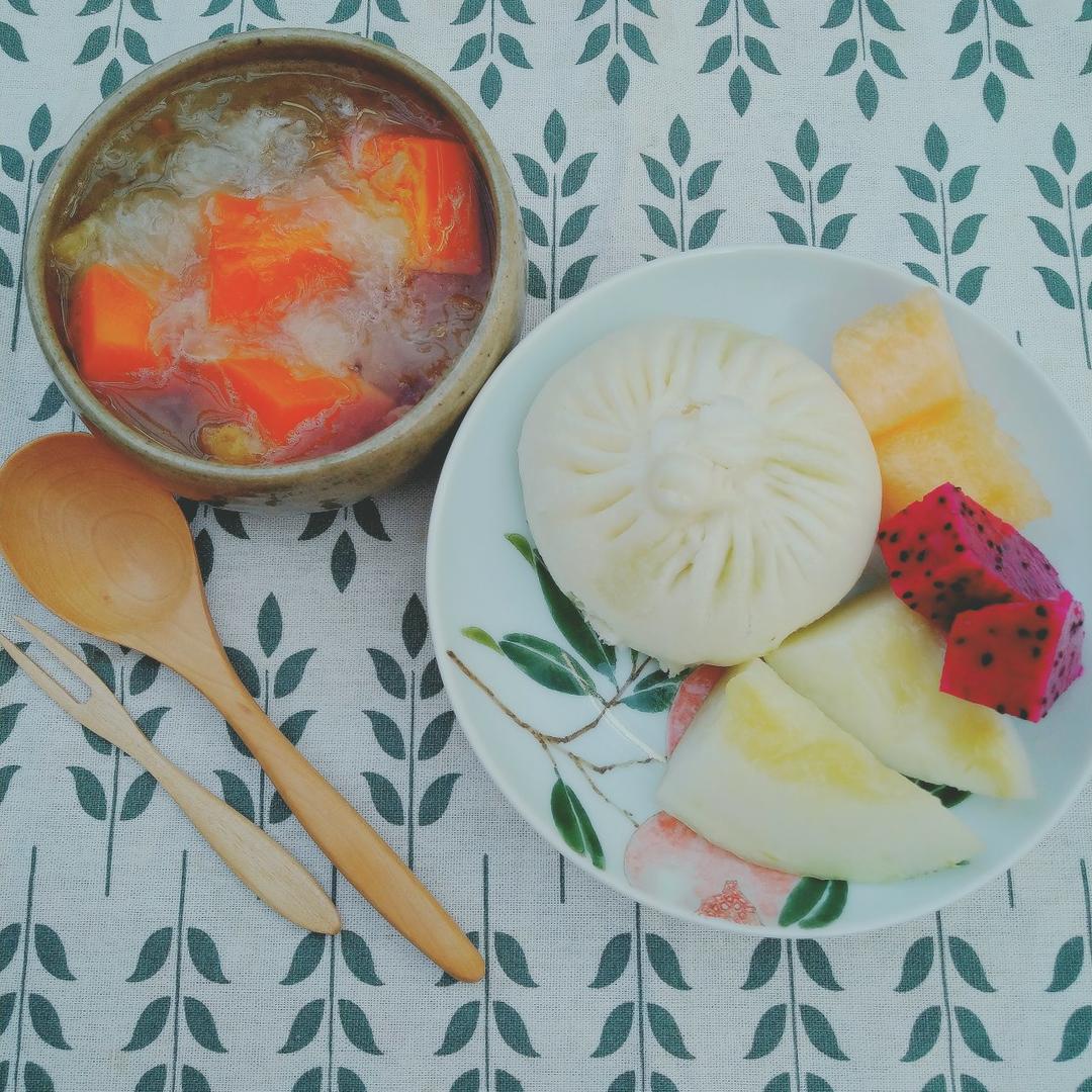 木瓜煮银耳,蔬菜大包~