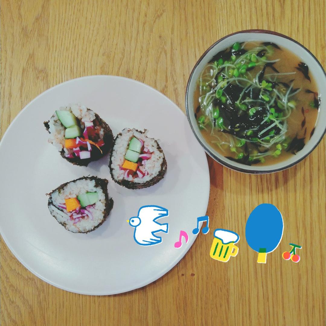 羊歇菜萝卜苗味增汤,紫菜包饭饭