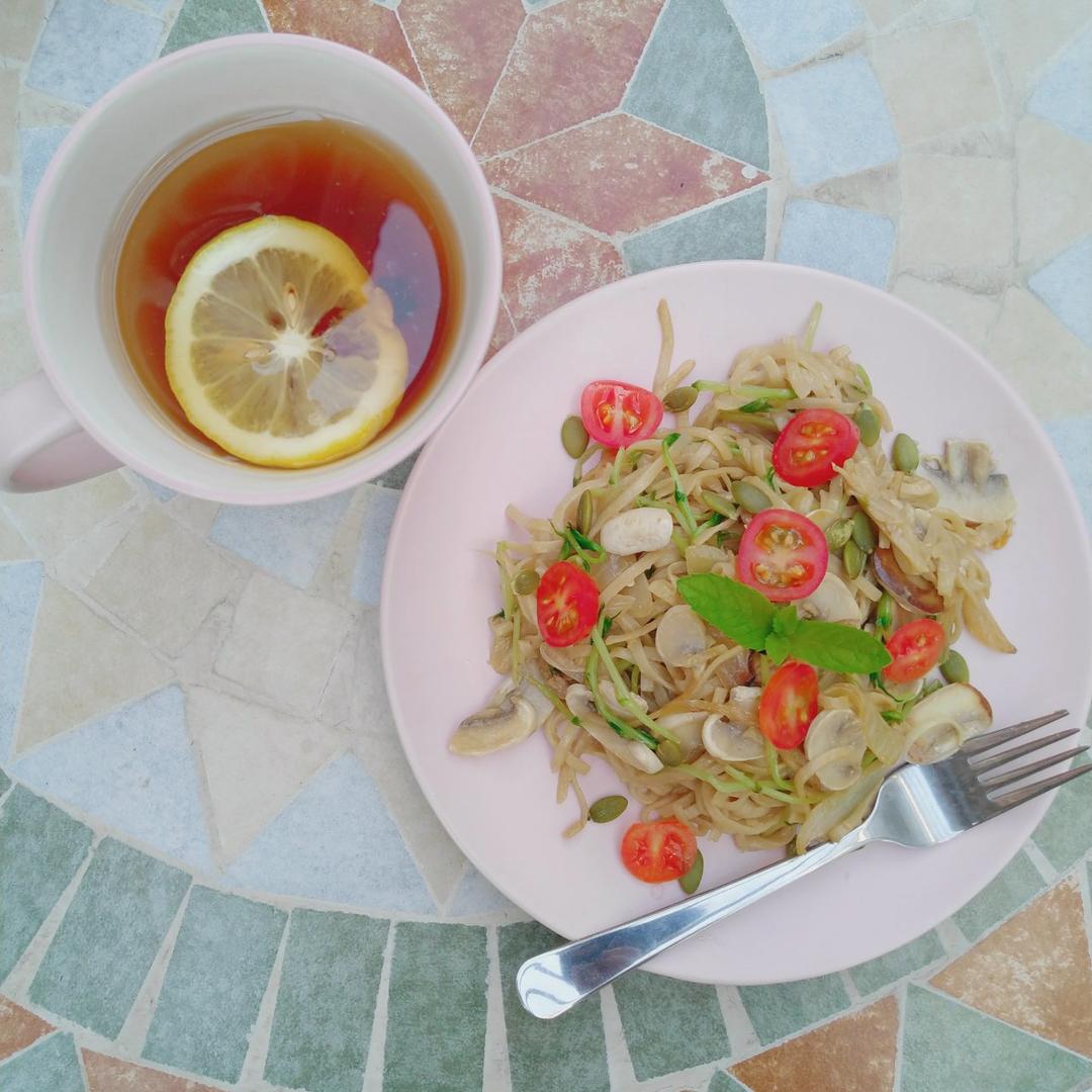 柠檬红茶,一碟炒面~
