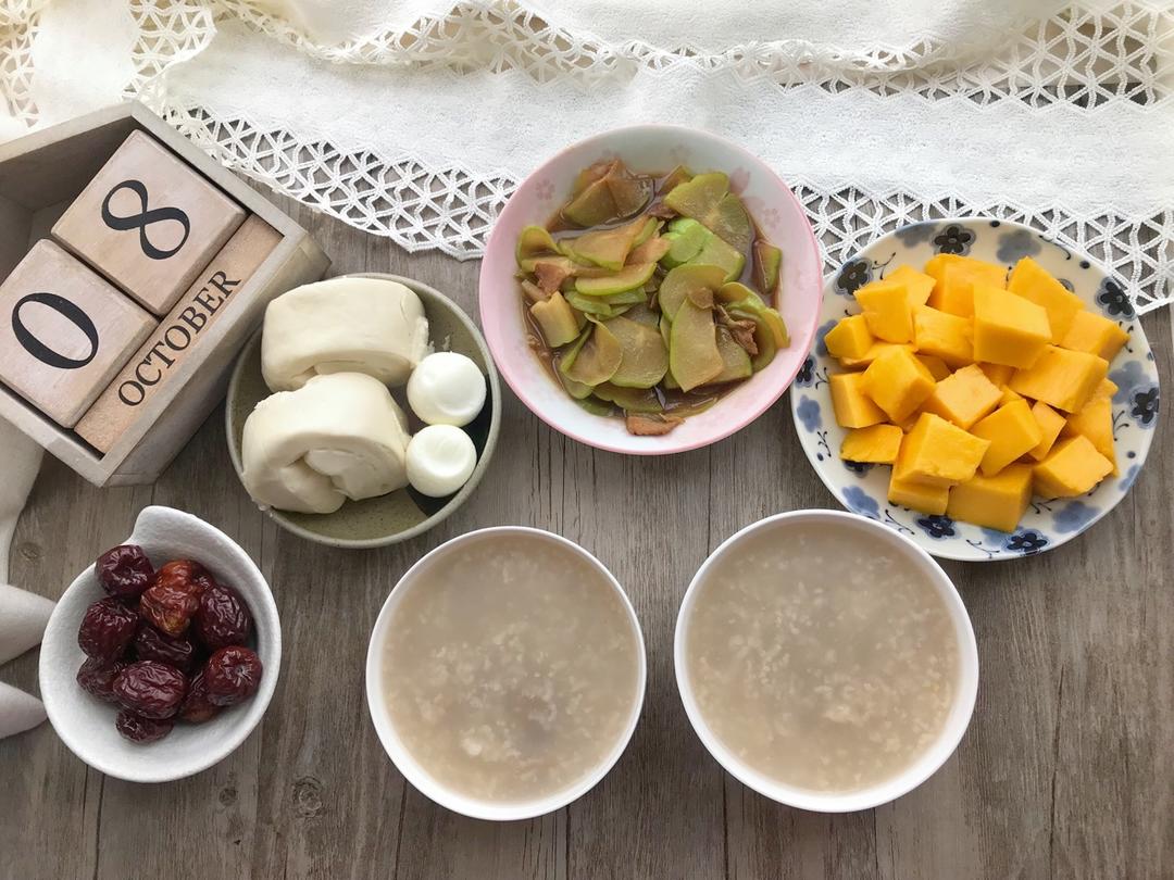 软炸馒头片、板栗大米粥...