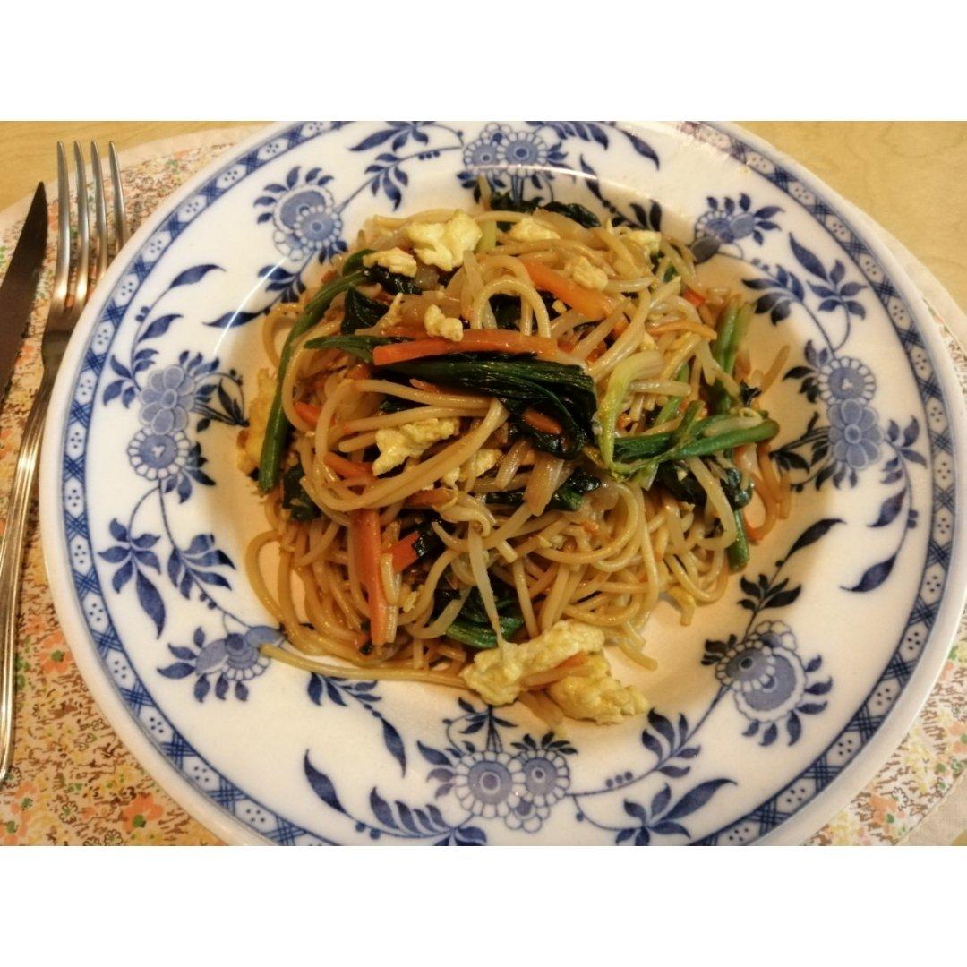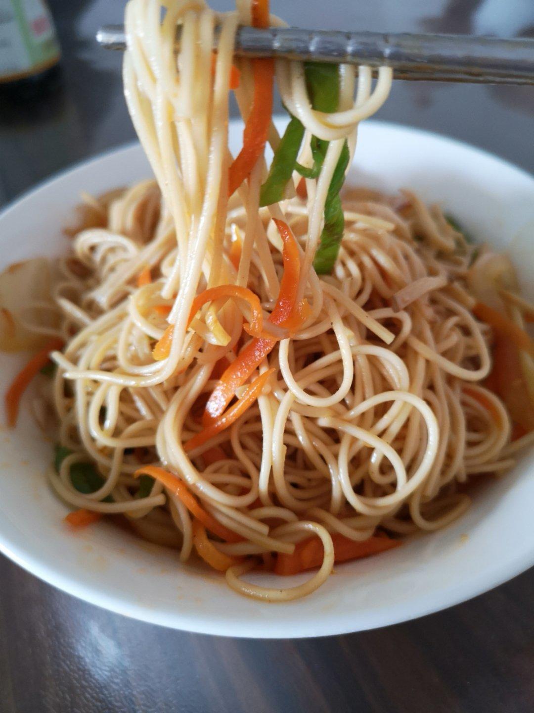 晚饭吃的太早了,再来一盘 素炒面😂
