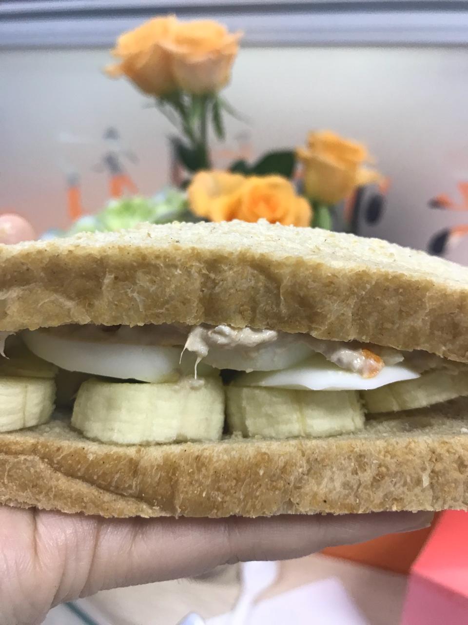 D 1【金枪鱼沙拉香蕉鸡蛋三明治】早起一点,好好吃早餐。