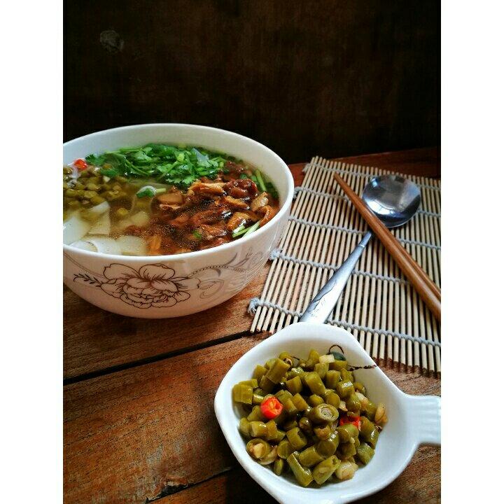 早安!鲜虾、自制酸豆角面