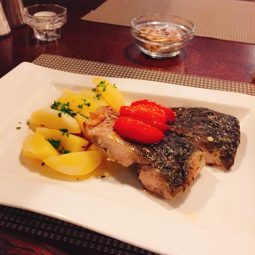 昨天在布拉格老城区的犹太餐馆吃的犹太传统烤鲤鱼,调味只有孜然粒和盐,配菜是烤番茄和煮土豆,朴素到让人不敢相信是道餐厅菜,...