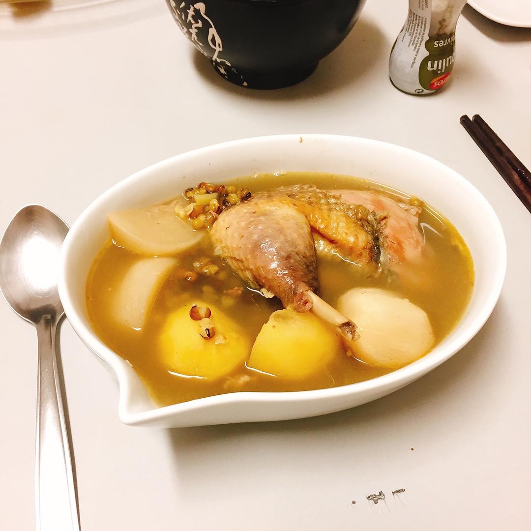 市场买了一只带头脚的珍珠鸡,长得有点像小恐龙也~~(鸡:你瞅啥?!)最近因为秋燥有点上火,晚上吃绿豆炖鸡吧! #晚餐•2...