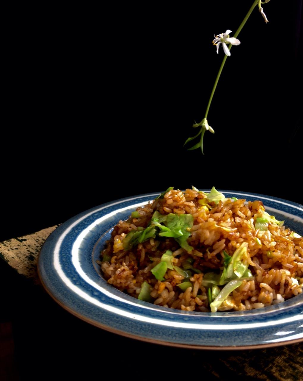 一个人的简单饭食~卷心菜炒饭。