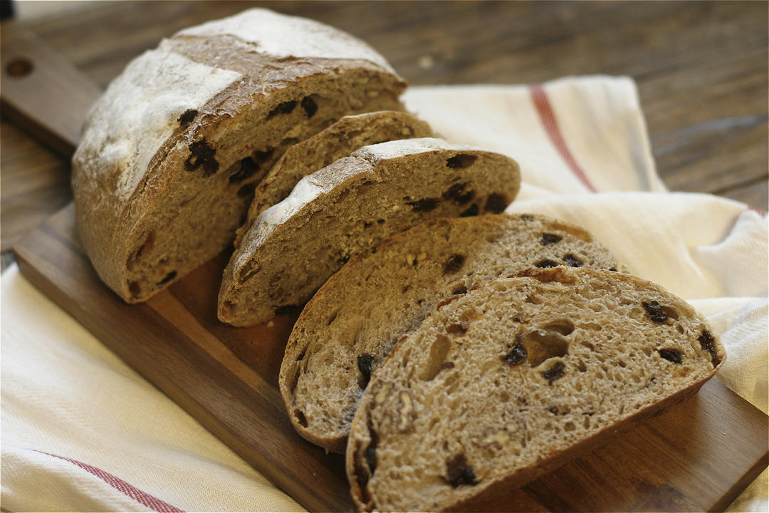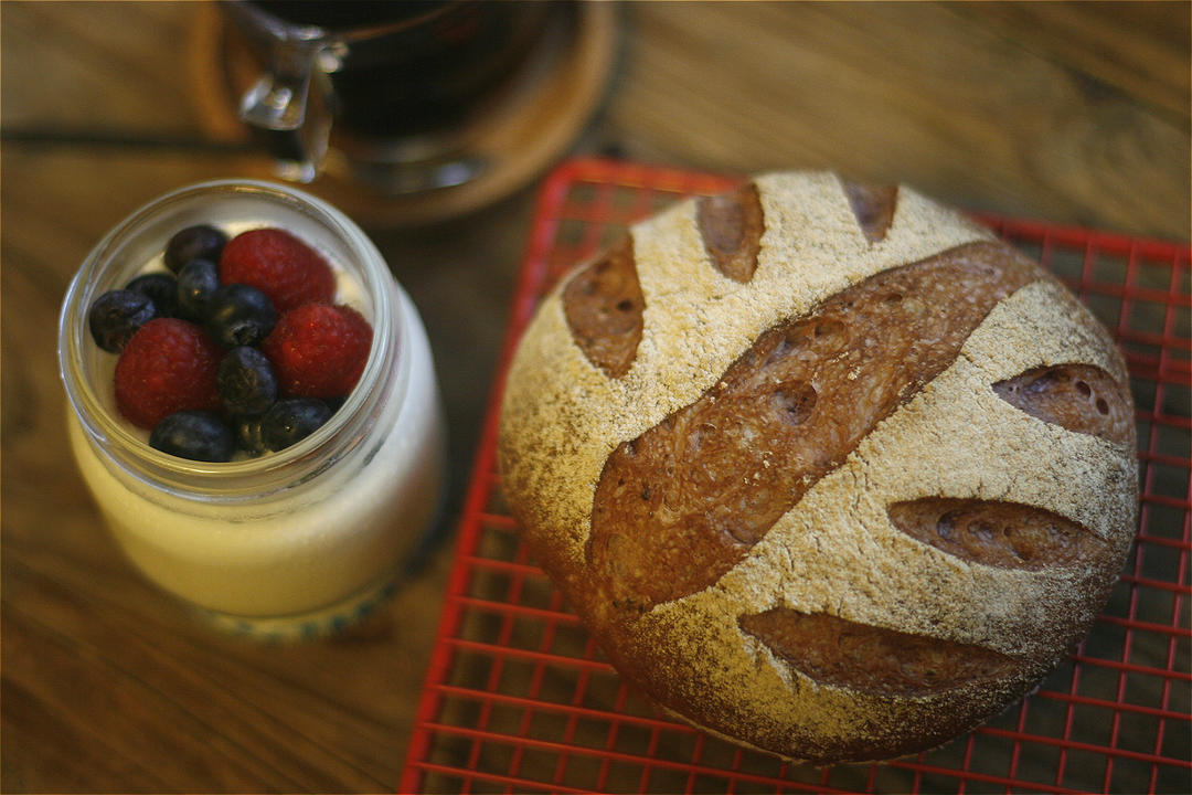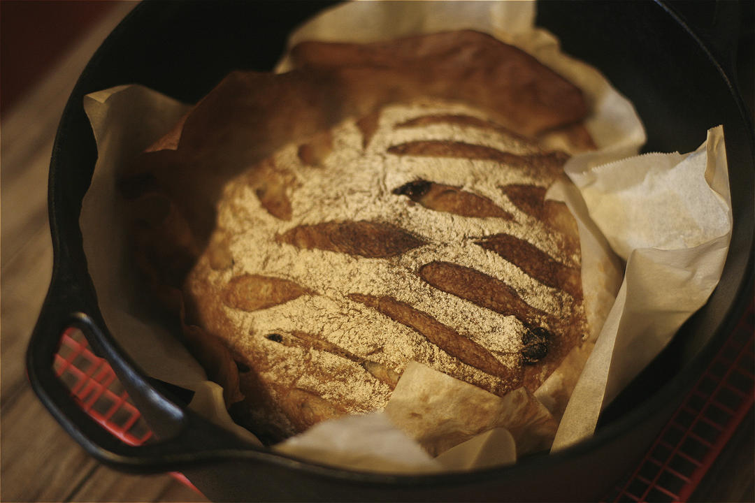 没想到比我想象中顺利。记录一下我的第一个天然酵母面包--乡村面包。看完绫也的视频泡了葡萄干种液,80G种液+80G全麦面...