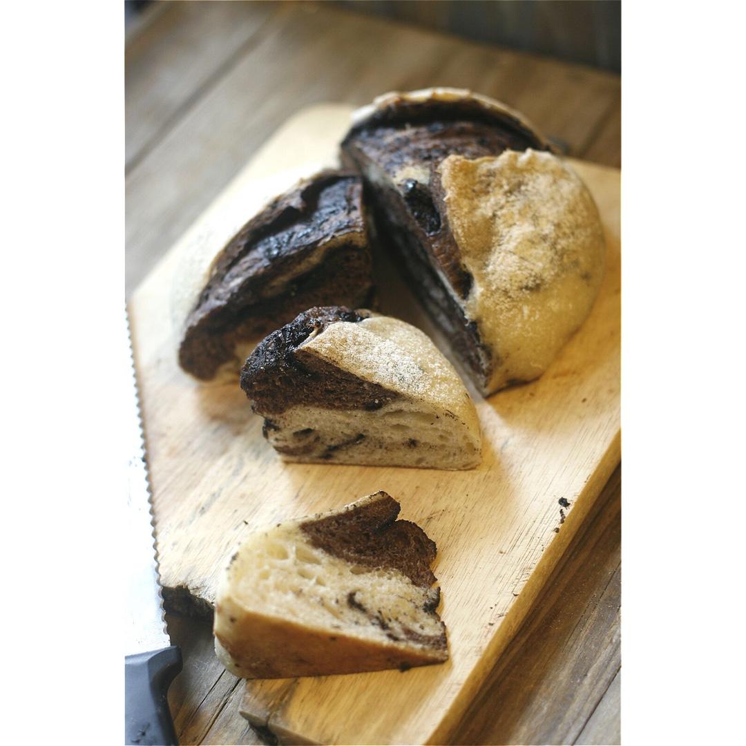 NO.2 巧克力栗子包。昨晚用了折叠的方法,然后还是冷藏发酵。今天早上烤,没有回温1小时,大概半小时就进去烤了。还是铁铸...