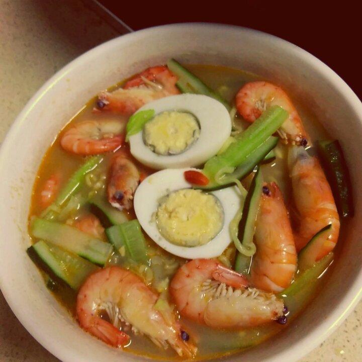 鲜虾面,只见虾。。。。