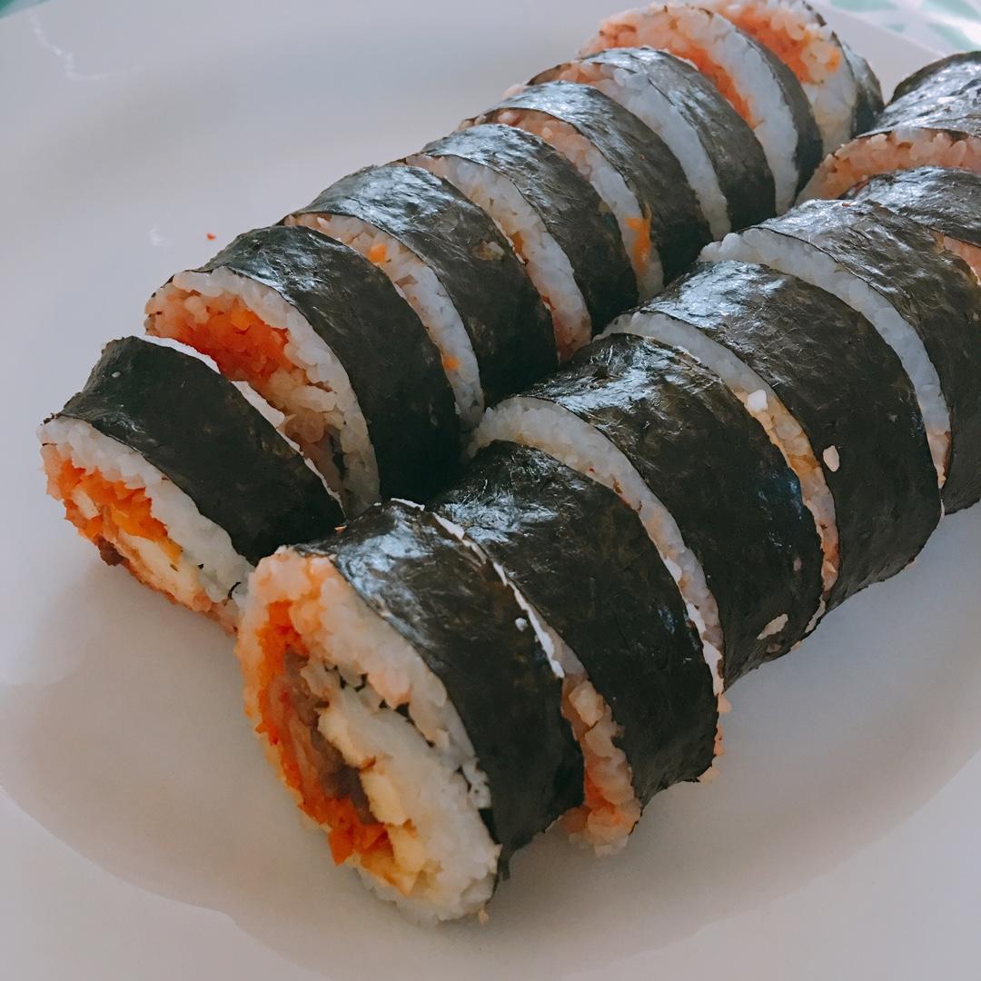 是的我这个懒鬼又做紫菜包饭了🤗美其名曰超级至尊紫菜包饭,把泡菜胡萝卜牛肉鸡蛋芝士都放进去了,然而泡菜力压群雄主宰了所有的...
